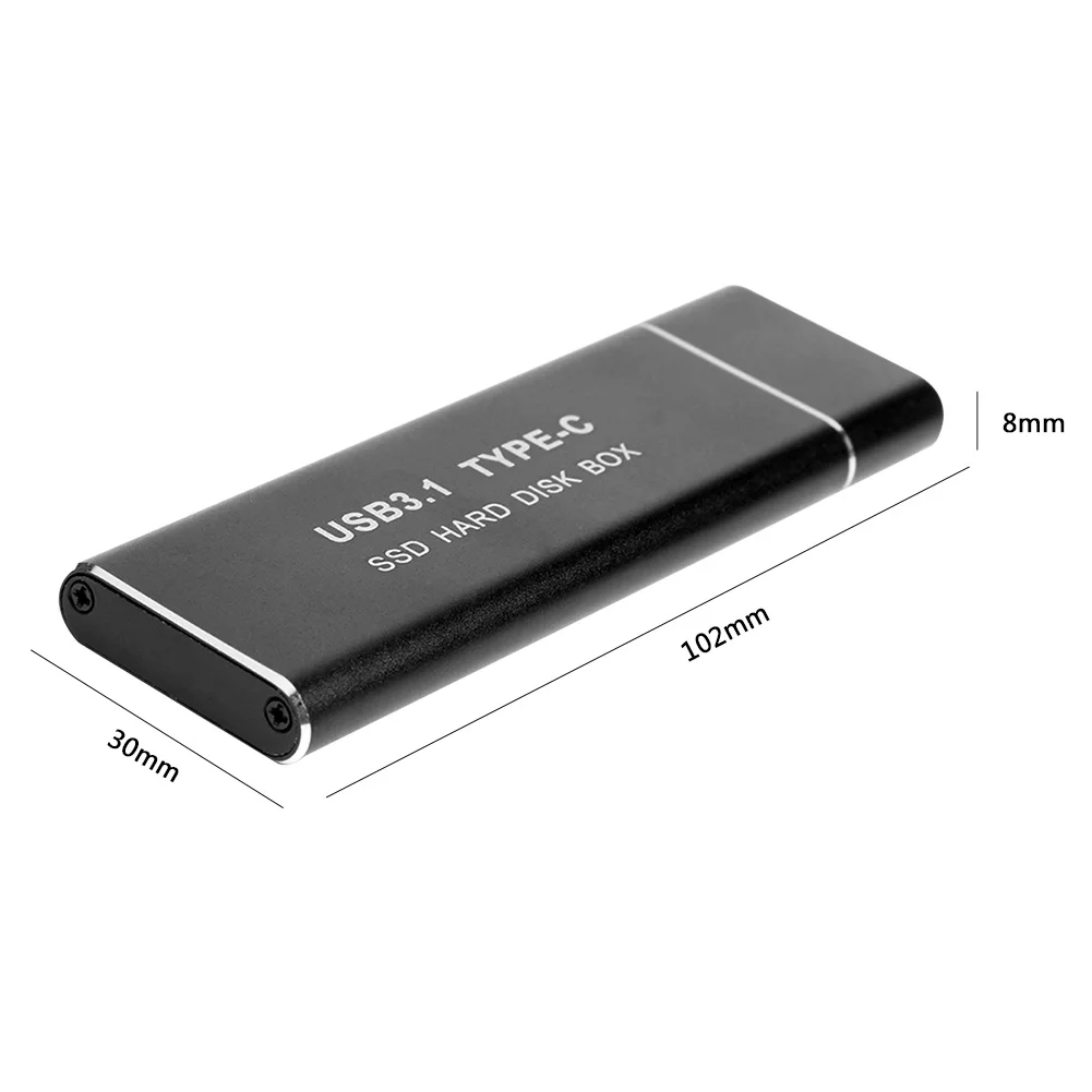Description: Dual Protocol 10Gbps Model. Support both NVME PCIe M key/M+B Key SSD and NGFF SATA protocol B key/M+B Key SSD,with 22cm Type-C to Type-C cable and 22cm Type-C to USB 3.0 cable,blue color. Feature: 1. M.2 SATA NVME to USB 3.1 hard drive enclosure. 2. Comply with SATA 3 specifications and comply with USB3.0 specifications. 3. Support SATA NVME protocol, suitable for M2 (B Key/B+M Key/M Key) SSD. 4. Support M.2 SSD, 22*30mm, 22*42mm, 22*60mm, 22*80mm solid state drives, (SSD hard drives are not included). 5. The output speed depends on the type of SSD you use, SATA (6Gbps), NVME (10Gbps). 6. Dual protocol uses two kinds of cables, Type-C to Type-A (5Gbps) and Type-C to Type-C (10Gbps). 7. The aluminum alloy shell increases the heat dissipation area, which facilitates the heat dissipation of the hard disk during work and increases the life of the hard disk. 8. Support UASP protocol. 9. Easy to use, no need to drive. Specification: Type: USB-C To USB-A Cable, USB-C To USB-A Cable + OTG Adapter, USB-C To USB-A Cable+USB-C To USB-C Cable(Optional) Suitable Type: M.2 SATA NVME 2230/2242/2260/2280 SSD Colour: Black Material: Aluminum Alloy Main Control: RTL9210B Maximum Support: 2TB Support Interface: B Key/B+M Key/M Key Output Connector: Type-C System: for Windows 98/Se/Me/2000/XP/Vista/Win7/Win8/Win10/MAC OS 8.6 or the latest version Size: 102 X 30 X 8mm/4.02 X 1.18 X 0.31" Installation Steps: 1. Use a screwdriver to unscrew the top screws and take out the PCB board. 2. Align the slots and install the SSD hard drive. 3. Tighten the screw at the bottom of the hard drive to fix the hard drive. 4. Put the installed hard disk into the hard disk box and close the top cover. Note: 1. Due to the different monitor and light effect, the actual color of the item might be slightly different from the color showed on the pictures. Thank you! 2. Please allow 1-3mm measuring deviation due to manual measurement. 1 X USB-C to USB-A Cable 1 X USB-C to USB-C Cable 1 X USB-C OTG Adapter 1 X Screwdriver