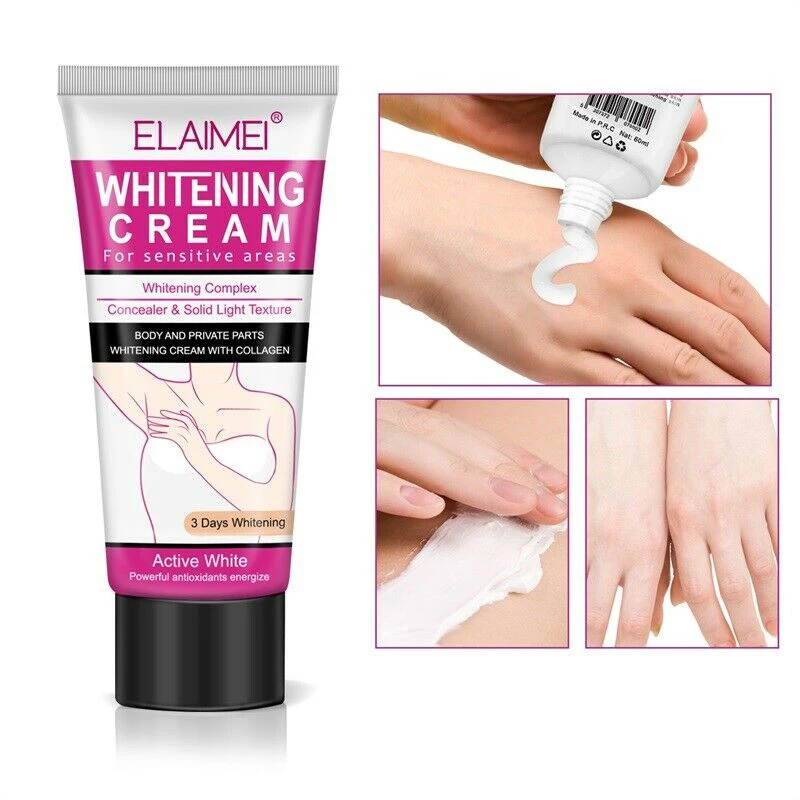 Отбеливает черную или желтую кожу подмышек, кожу локтей, кожу колена, частные части кожи.