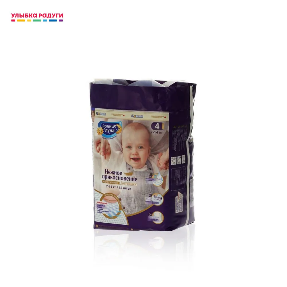 Подгузники Солнце и луна для детей "Нежное прикосновение" размер 4 7-14кг 12шт