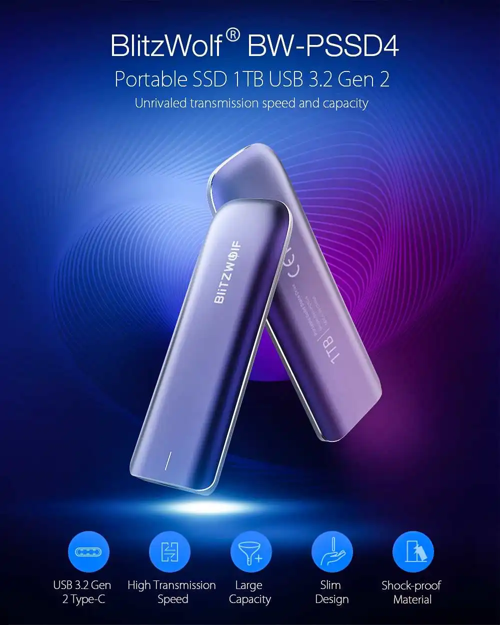 Отзывы о Твердотельный накопитель BlitzWolf из алюминиевого сплава с BW-PSSD4 портом USB 3 2 ТБ |