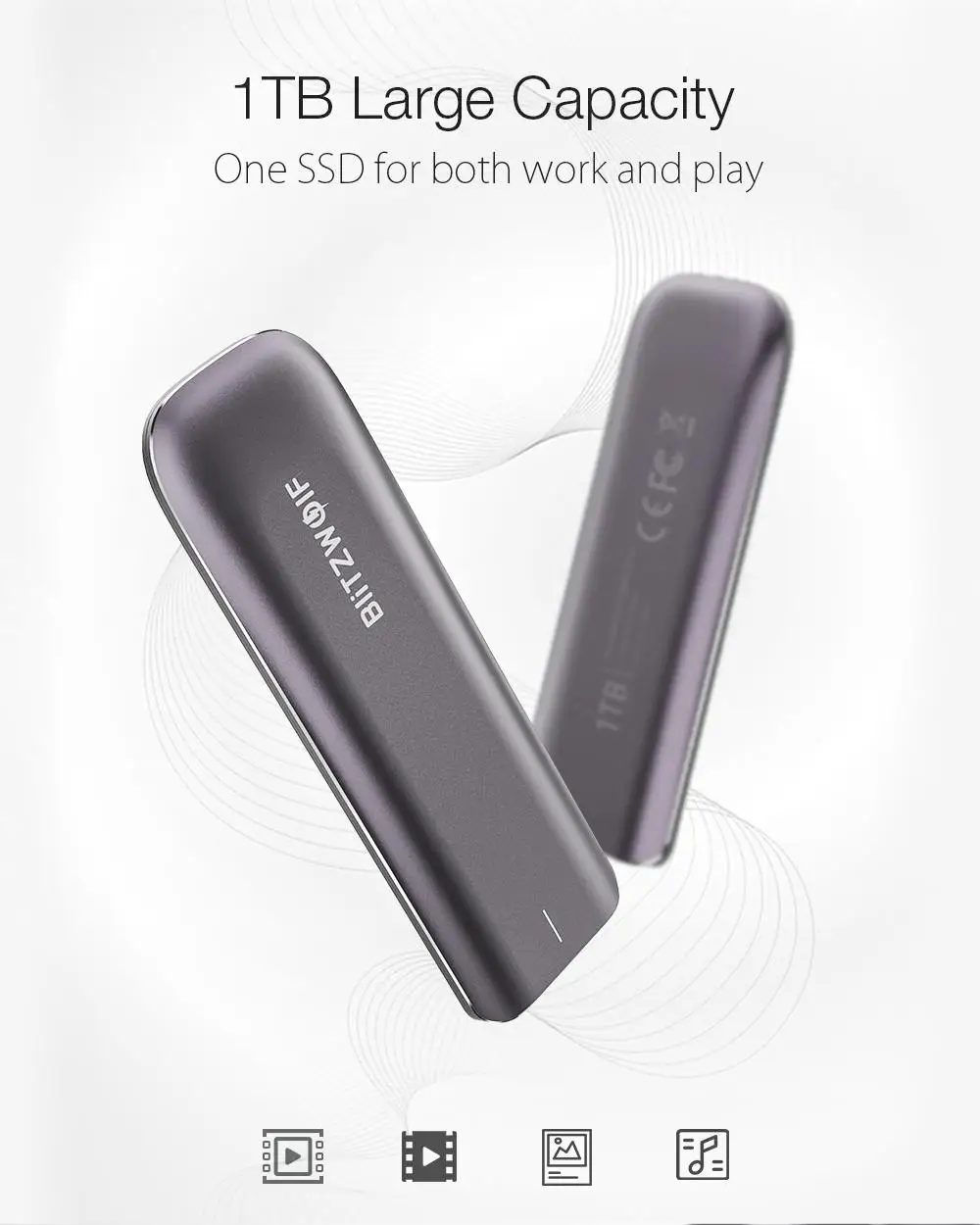 Материал алюминиевый сплав Размеры изделия 105*34*10 мм Вес нетто 40 г Емкость 1 ТБ Скорость чтения до 940 МБ/с. Скорость записи до 910 МБ/с. Поддержка режима USAP Интерфейс USB 3,2 Gen2 Совместимая система Windows XP/Vista/7/88.1/10, для Mac OS X 10,6, ядро Linux 2,6 Совместимая система для мобильных устройств Windows 10/Mac/Linux/PS4 и XBOX One Особенности: 1. BlitzWolf BW-PSSD4 портативный SSD 1 ТБ USB 3,2 поколение 2. 2. Непревзойденная скорость передачи и емкость. 3. Порт USB 3,2 Gen 2 Type-C, Высокоскоростная передача данных до 940 МБ/с.. 4. Порт PCIe Gen3 * 4 (32 ГБ/сек.) + протокол NVMe 1,3. 5. Портативный размер + тонкий стиль. 6. Устойчивость к ударам и разрушению. 7. Кабель USB C к A + USB C к C, совместим с большинством устройств. 8. Легко переключается между системами. 9. Соболь в качестве внешнего хранилища для вашей PS4, XBOX и наслаждайтесь бесперебойной игрой
