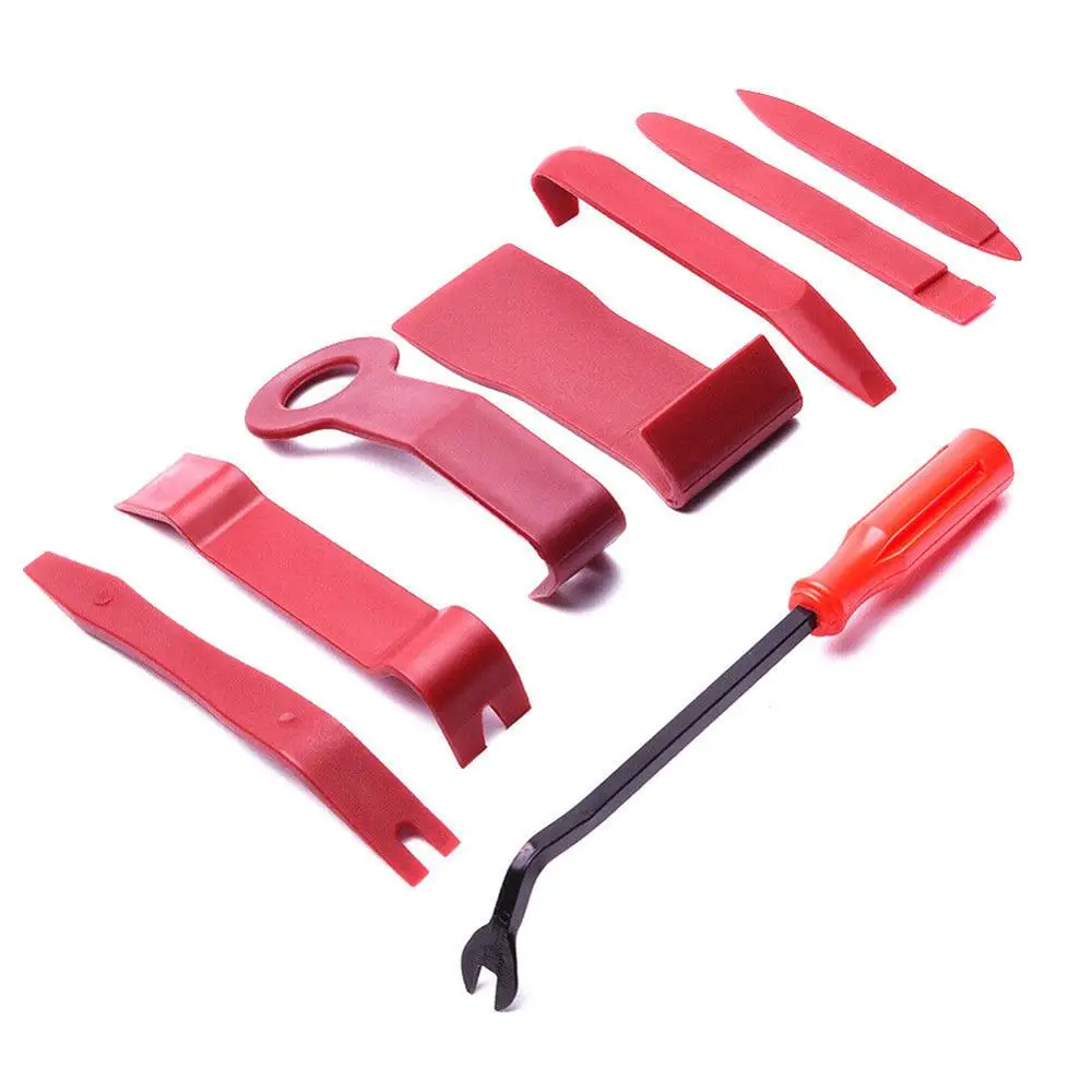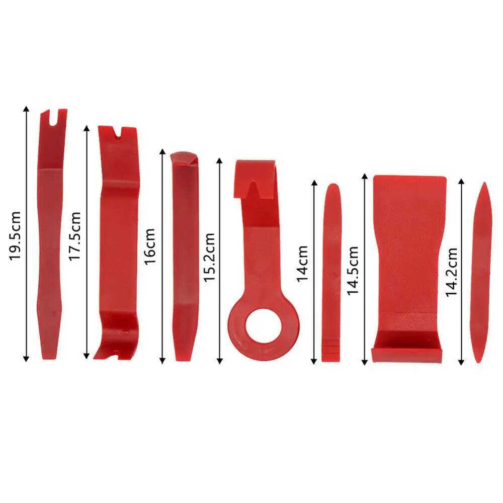 * Это очень хорошее качество и хороший набор для удаления отделки общего назначения. Это поможет вам установить и удалить аудио оборудование, дверь и окно * красные пластиковые Инструменты изготовлены из Супер прочного и слегка гибкого пластикового материала, лучше, чем жесткий ABS. Средство для удаления Красной застежки имеет приятное покрытие для предотвращения ржавчины и высококачественную пластиковую ручку.