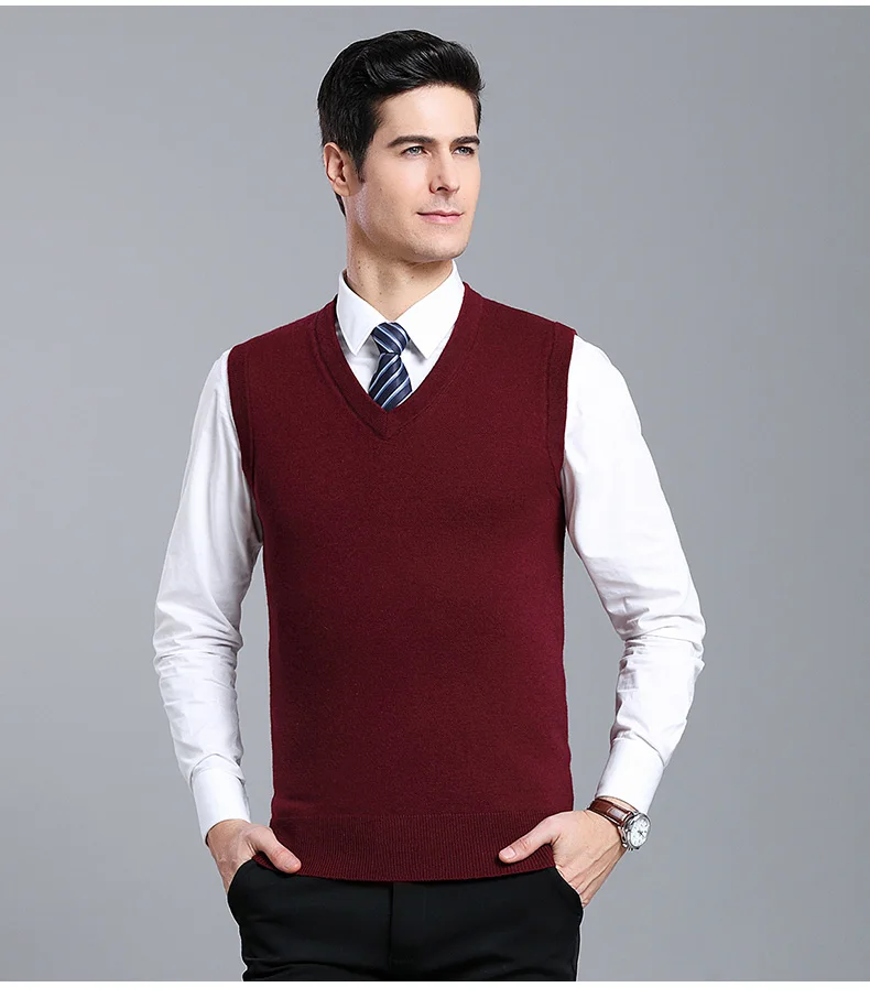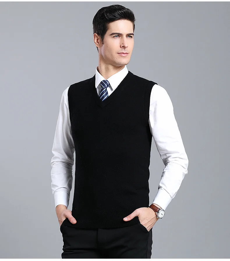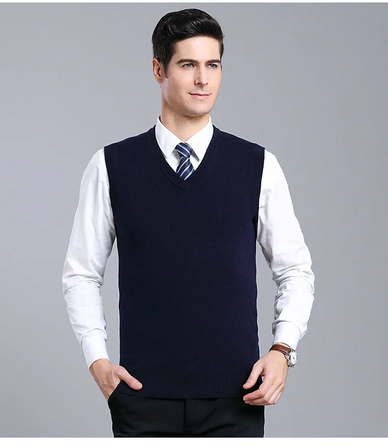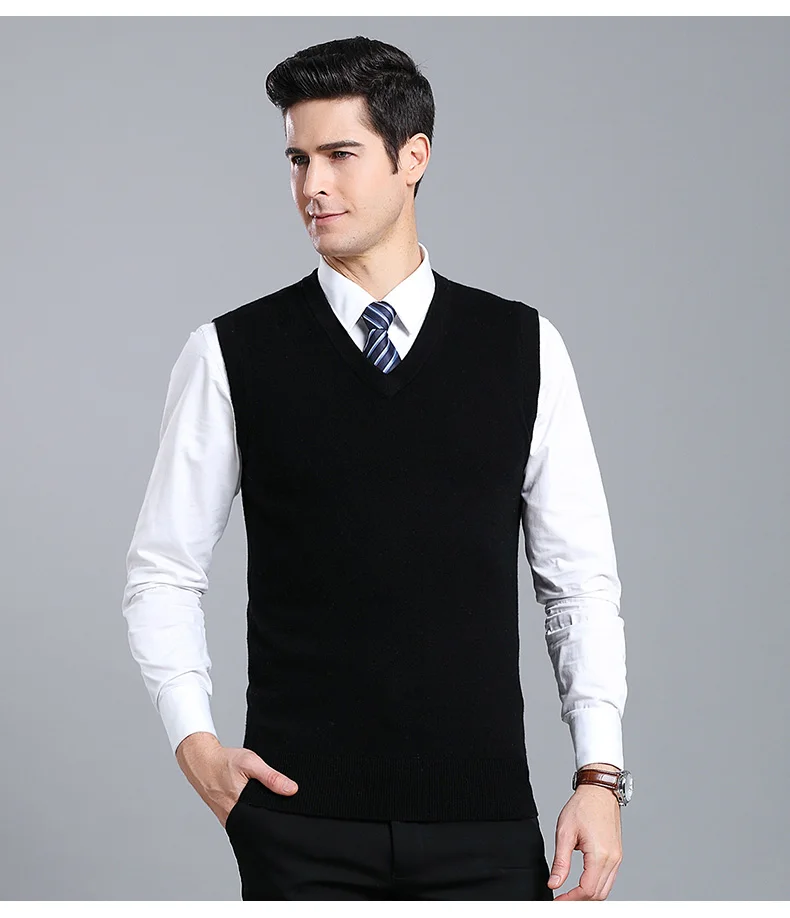 Отзывы о Мужской плотный жилет из 100% шерсти осенне-зимний Однотонный свитер без рукавов