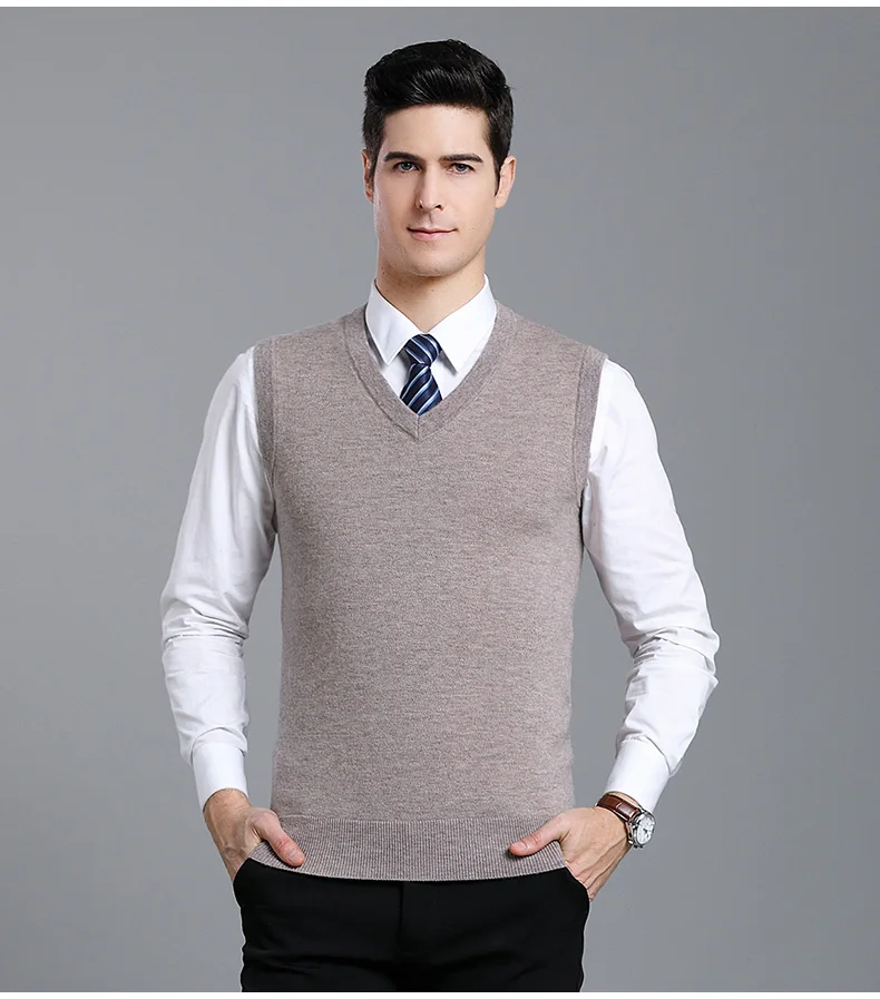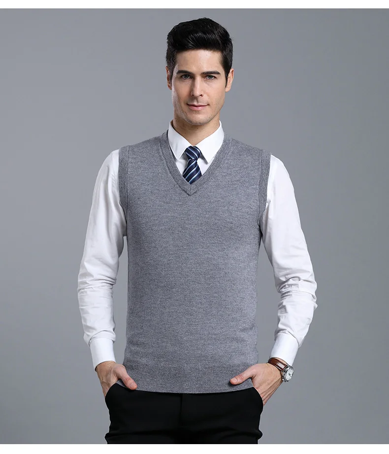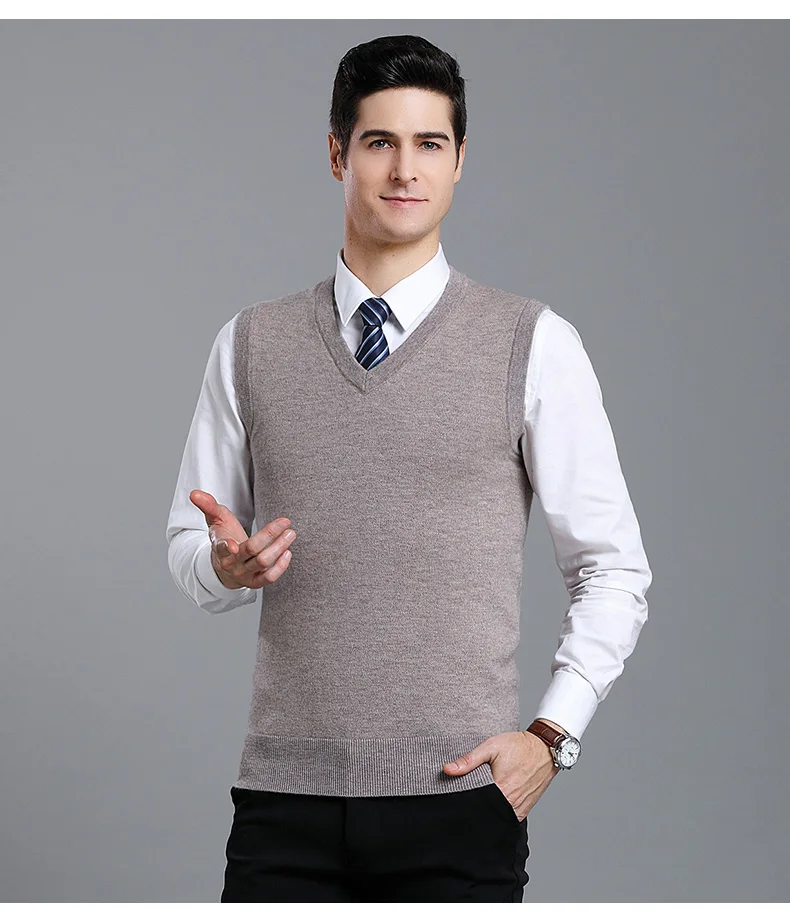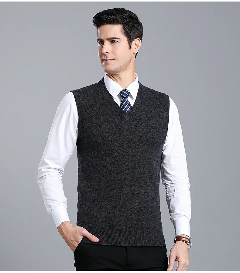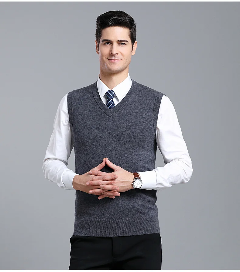 Отзывы о Мужской плотный жилет из 100% шерсти осенне-зимний Однотонный свитер без рукавов
