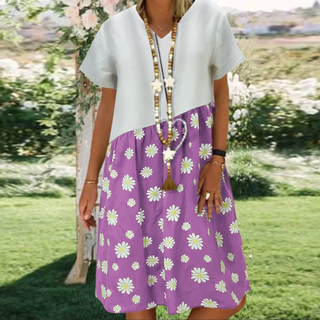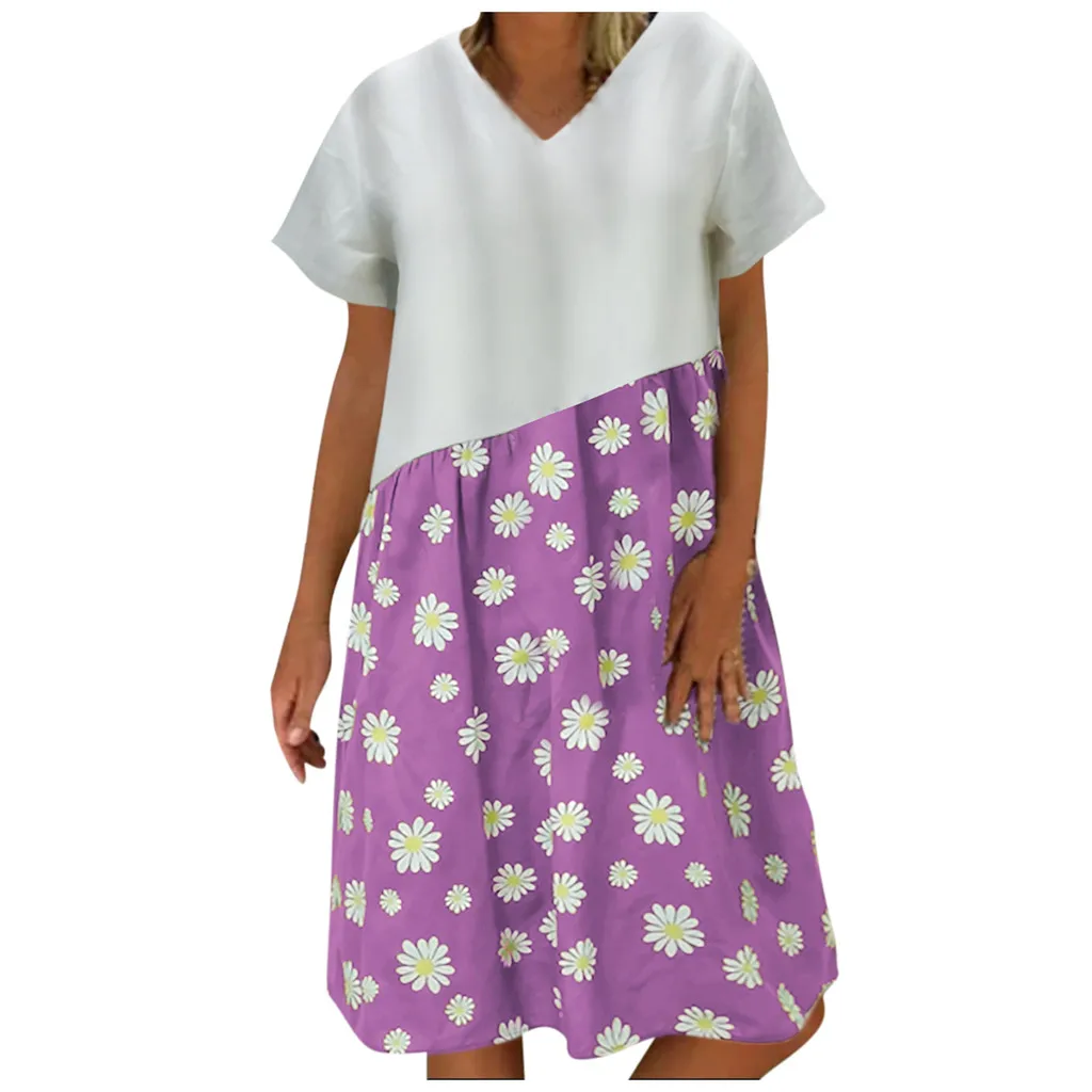 Женское повседневное Свободное платье с v-образным вырезом и коротким рукавом, большие размеры Пожалуйста, проверьте таблицу размеров перед заказом. Если вы не уверены в размере, пожалуйста, отправьте нам сообщение.Особенности:
