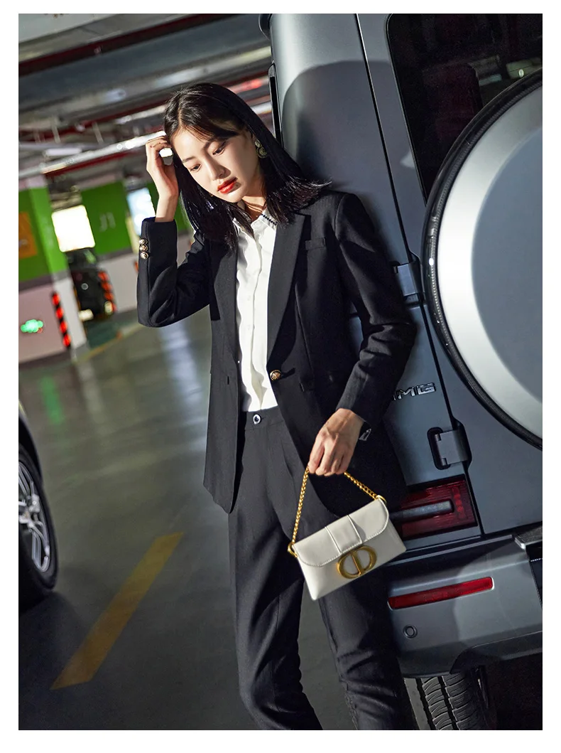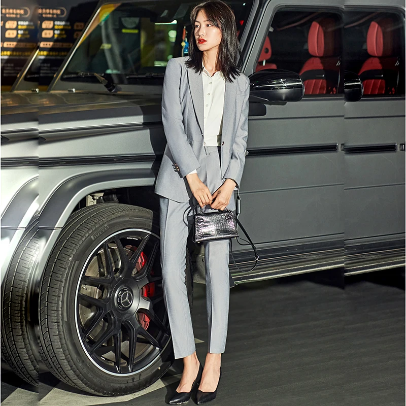 Отзывы о Женский брючный костюм для делового и офиса серый черный саржевый блейзер в