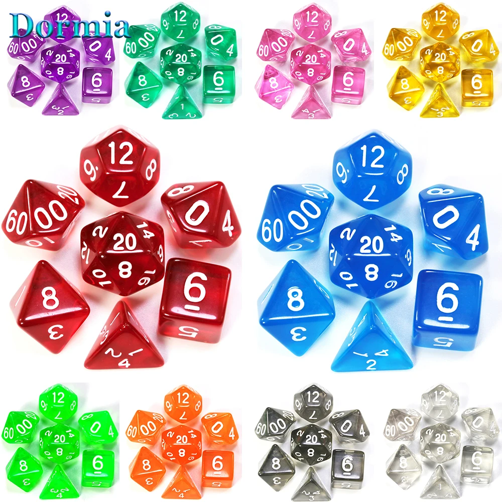 7 шт./компл. Прозрачные Цифровые многогранные цветные кости, D4,d6,d8,d10,d12,d20 переносные игральные кубики, для настольной игры Rpg Dnd