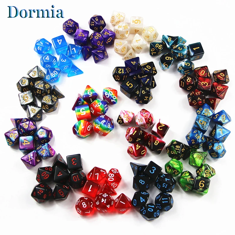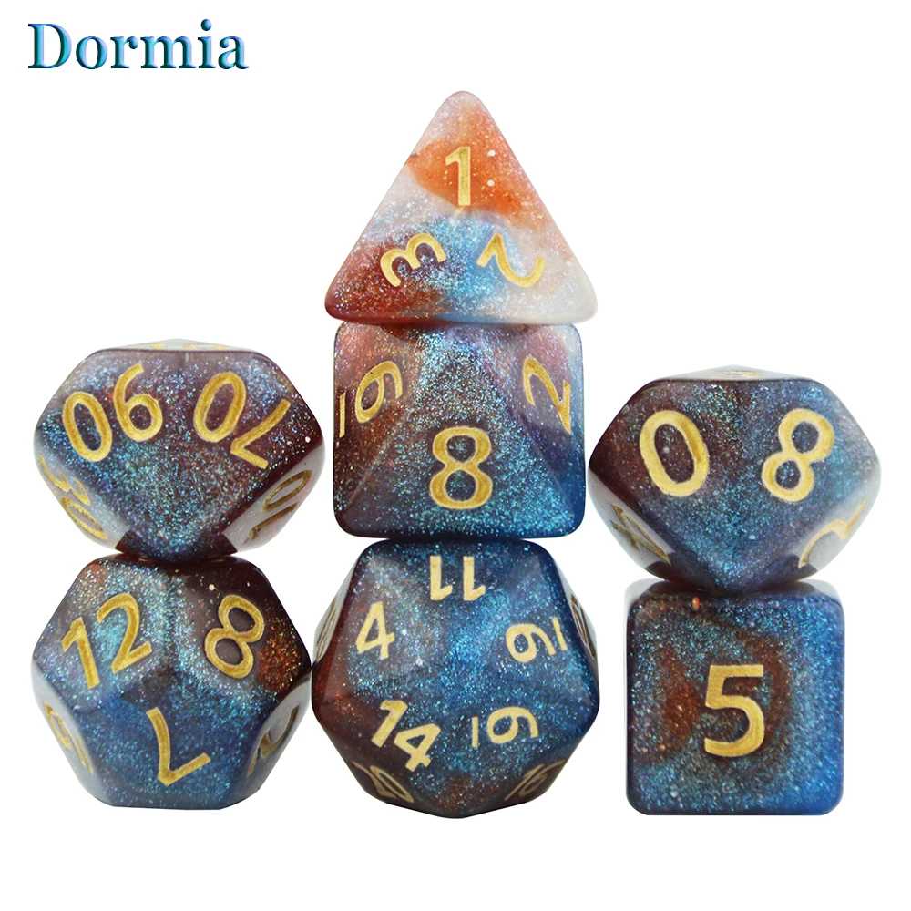 Высокое качество 7 шт./лот набор блестящих многогранных игральных костей D4 D6 D8 D10 D % D12 D20, настольная игра для азартных игр DnD TRPG