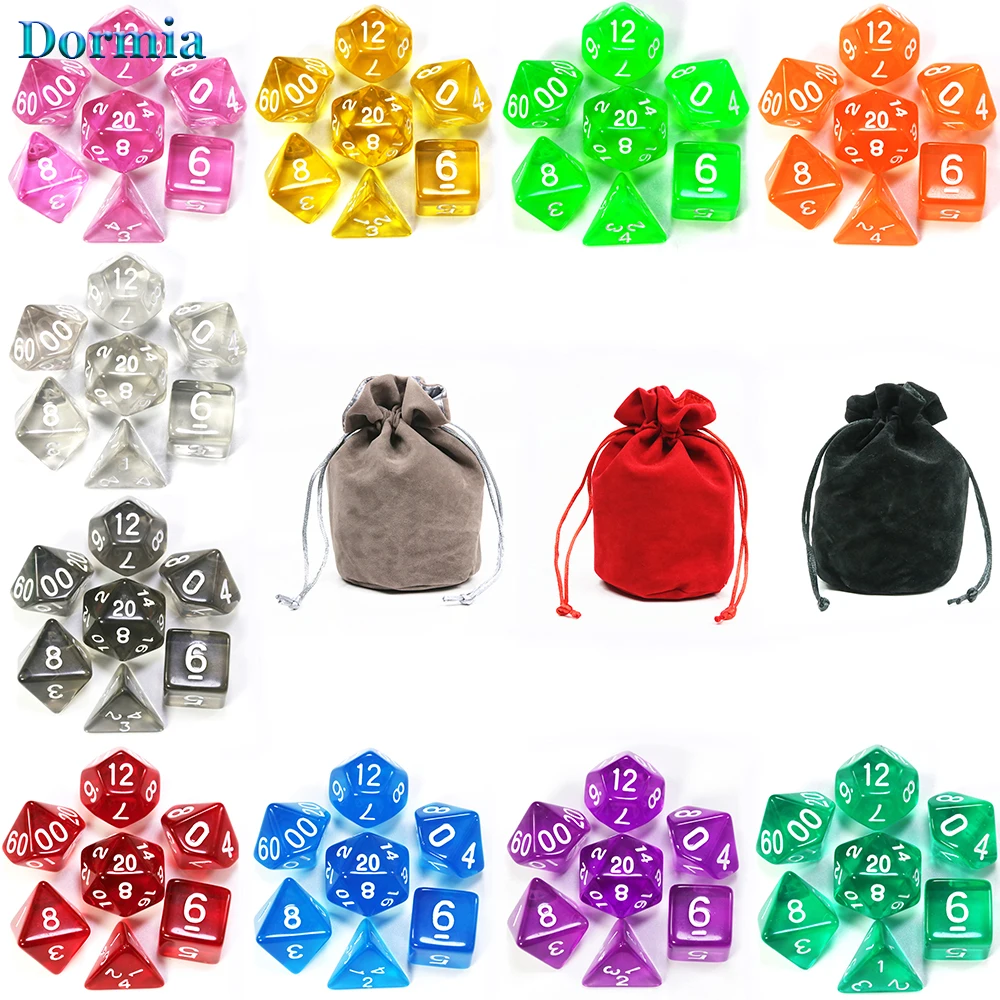 Высокое качество 70 шт красочные прозрачные кости набор, с бархатный мешок с кулиской, для RPG DnD и другие аксессуары для настольной игры