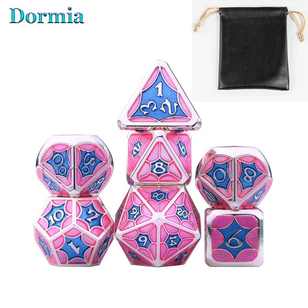 Новое поступление, 7 шт., многогранное покрытие, эмаль, металлические кости, набор, шрифт, с сумкой, для DND ролевых игр