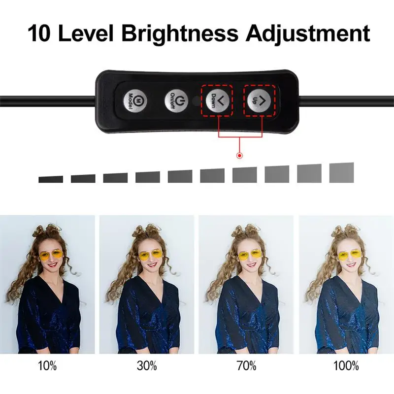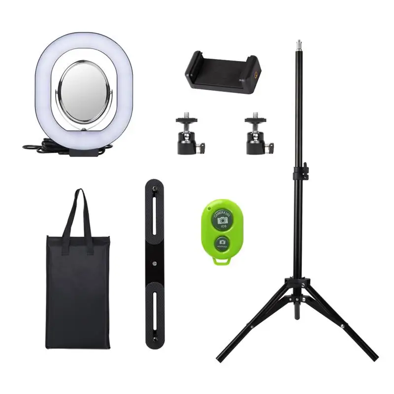 Функция:1. Светильник трех цветов, каждый цвет имеет 10 режимов яркости, 2. Кольцевой светильник, оснащенный двухсторонним зеркалом, нормальными и увеличительными зеркалами, 3,два в одном дизайне, вы можете создавать и снимать видео вместе, 4. Регулируемый штатив-светильник, может растягиваться до 32 дюймов, 5. С упакованной сумкой, она сделает ее портативной и удобной в хранении, 6. С беспроводным bluetooth автоспуском (Включая батарею кнопки), вы можете свободно управлять смартфоном.Описание:Тип: светодиодный кольцевой светильник «Два в одном» Размер: 6 В Светодиодный светильник: 64 шт. светодиодный светильник-штатив: 11-32 inchesPower: 10 Вт Источник: usb зарядка для: Макияж Видео Live Studio togetherПосылка:1 * Кольцо с регулируемой яркостью 1 * Горизонтальная Поддержка 1 * телефон clip1 * Bluetooth self-timer1 * Штатив stand2 * подставка для головы 1 * Упакованная сумкаИнструкции по удаленному Bluetooth:1. Нажмите кнопку питания, светодиодный мигание; 2. После включения нажмите клавишу сопряжения bluetooth, светодиодный индикатор мигает медленно. Шаги bluetooth до состояния, которое можно искать и сочетать; 3. Используйте мобильные телефоны для соответствия. Светодиодный индикатор будет выполнен после успешного сопряжения; 4. Нажмите соответствующую клавишу конфигурации. Светодиодный светильник после настройки. Продукт может использоваться обычно в это время. 5. Без использования в течение пяти минут продукт автоматически войдет в спящее состояние. Пожалуйста, нажмите кнопку питания, чтобы выключить таймер, когда он не используется, чтобы убедиться, что аккумулятор используется для длительного времени. 6. Может заряжаться с ПК-устройств или мобильных адаптеров питания. Светодиодный on --- зарядка. Светодиодный выход --- насыщенность.Совместимость с пультом дистанционного управления Bluetooth:1. Может быть соединен с мобильным телефоном bluetooth, без дополнительного программного обеспечения. 2. Применимо практически ко всем моделям телефонов на рынке, в том числе для iPod/iPhone/iPad/i9220/i9250/i9300/i9500/i9190 и некоторых других Android 4,1 выше. 3. Можно использовать для съемки на большом расстоянии до 10 метров при отсутствии препятствий.