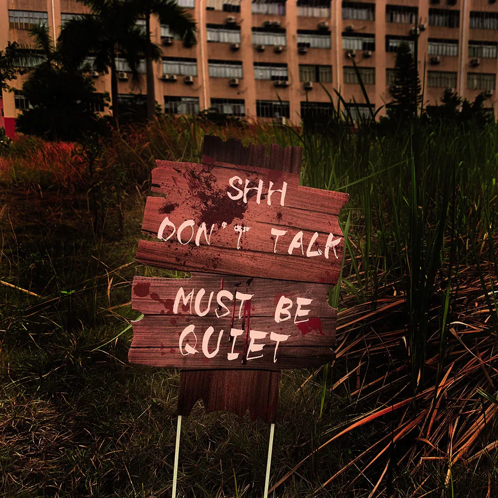 Упаковка-Каждая посылка имеет 3 знака + 6 пластиковых свай, которые содержат некоторые ужасные предупреждающие сообщения, такие как «Мы устали от скрытых тел, не вторгайтесь».