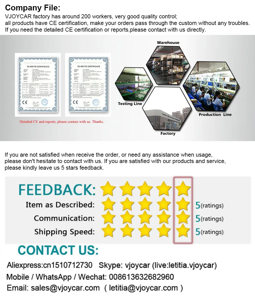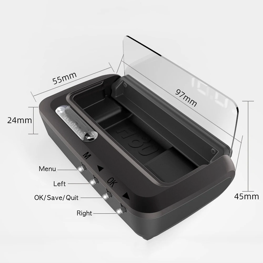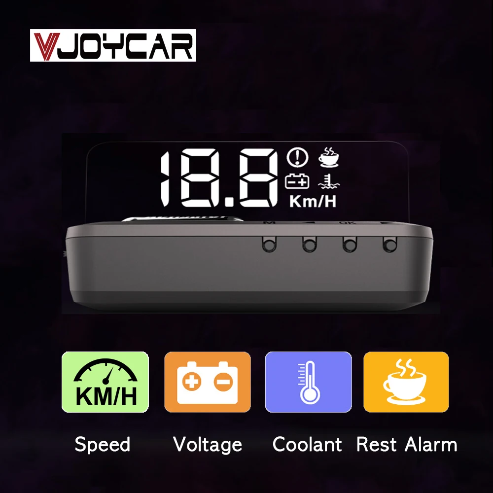 1. Гарантия бренда VJOYCAR 100% 2. С зеркальным проектированием, отображение данных становится более блестящим и четким: 4 различных режима отображения 3. Безопасность вождения, держать глаза впереди, нет необходимости вниз головой, чтобы увидеть приборную панель во время вождения 4. Легко установить, только нужно подключить HUD с автомобильным OBD портом по OBD кабелю, HUD будет отображаться, когда автомобильный двигатель ВКЛ/ВЫКЛ 5. Оповещение о превышении времени вождения, оповещение о низком напряжении, оповещение о превышении скорости, оповещение о высокой температуре, напоминание об усталости при вождении 6. KMH и MPH переключатель свободно. 7. Совместимость для: автомобилей в стандарте OBD II 8. Положение установки: на центральной консоли 9. Подключение: подключение к автомобильному порту OBD 10. Отображение информации: скорость, обороты двигателя, температура воды, расстояние движения, напряжение батареи...