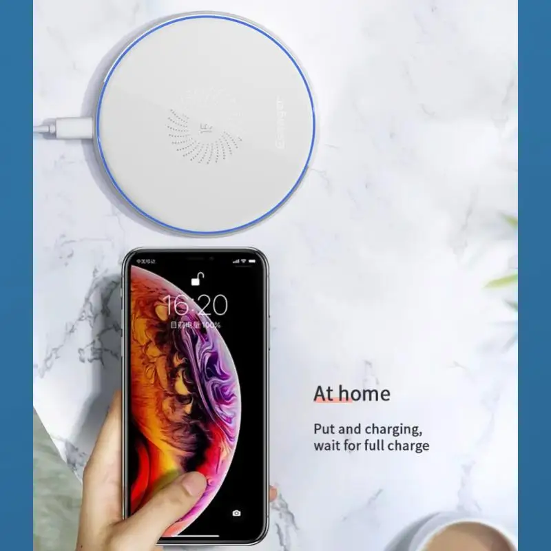 6. С мягким индикатором дыхания, он не ослепляет, чтобы зарядить ночью, легко найти Состояние индикатора на мобильный телефон (1. Синий индикатор светильник будет в течение 3 секунд и выключить Вай-Фай, когда идете в Беспроводное зарядное устройство работает от сети. Это будет Подсказка для зарядки устройства. 2. Светильник индикатора зарядки будет синим. При зарядке синий светильник включается и выключается поочередно 3. Синий индикатор мигает, показывая, что есть Блокировка постороннего объекта или телефон размещен)