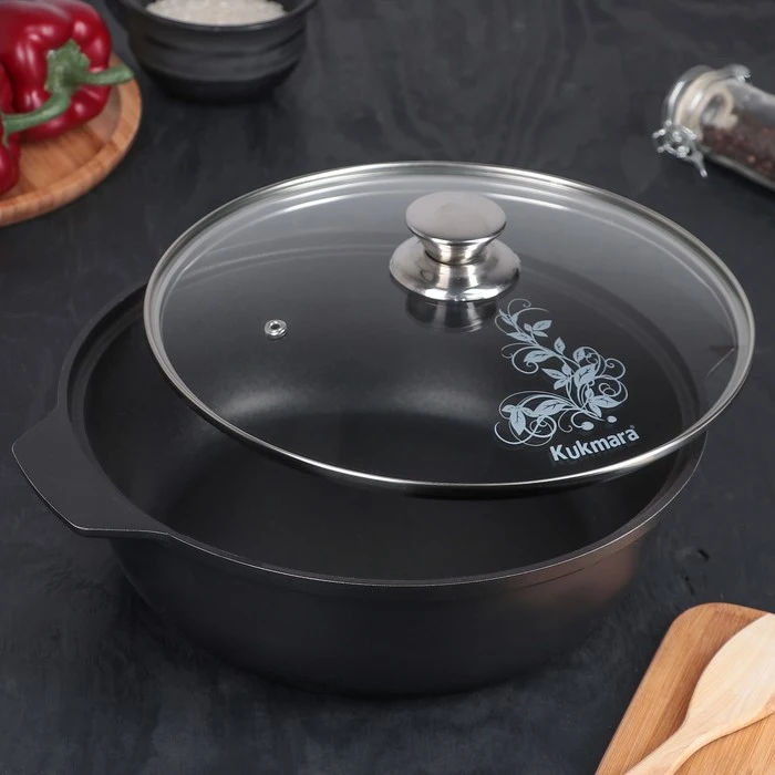 Жаровня «Традиция», d=26 см, 3 л, стеклянная крышка, антипригарное покрытие