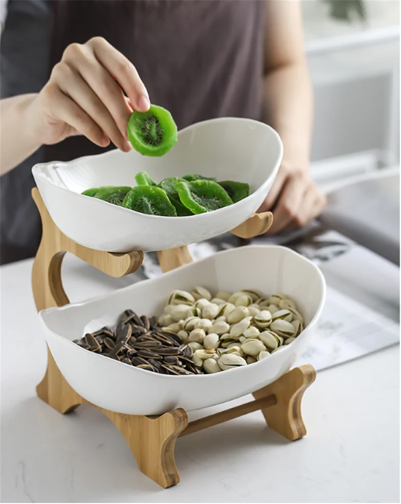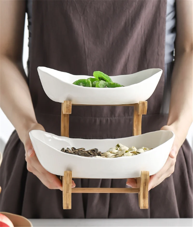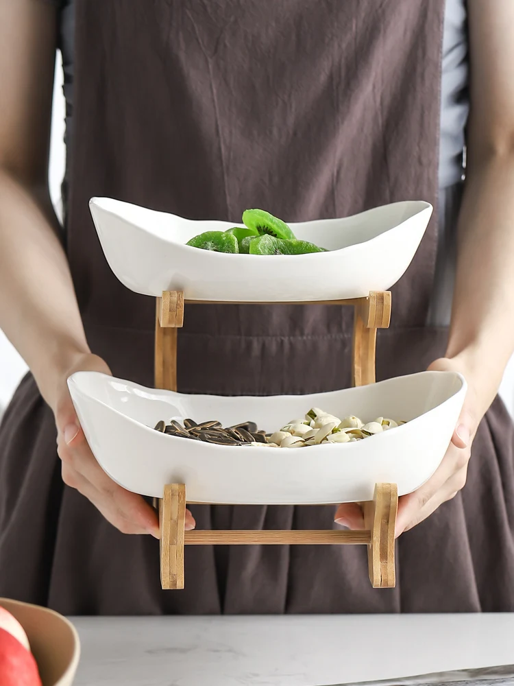 Стеллаж для хранения в гостиной, креативный поднос для закусок в скандинавском стиле, простая керамическая двухслойная тарелка, поднос для фруктов, поднос для ресторана