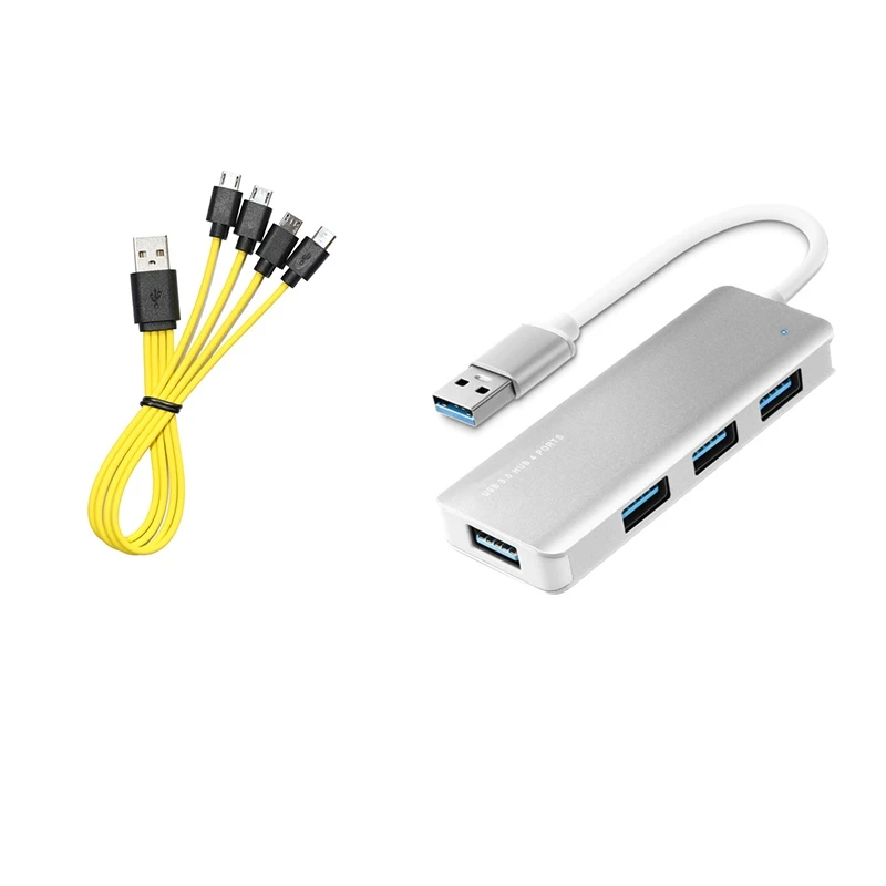 1 шт 4 порта USB сплиттер и 2 шт 4 в 1 Micro-USB кабель для зарядкиДля зарядного кабеля Micro-USB Znter AA AAA 18650