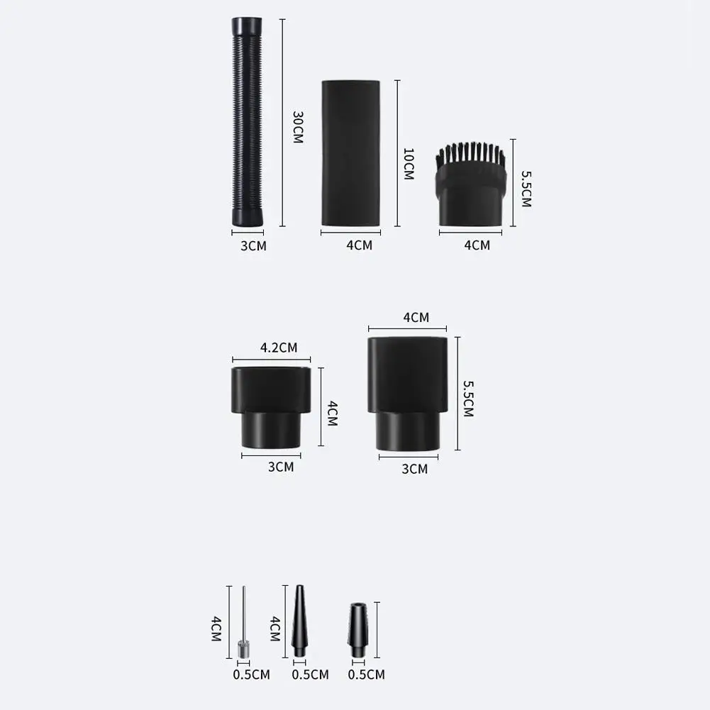 5. Автомобиль и дом двойного назначения; Вакуумный и надувной два в одном. Подходит для интерьеров автомобильных сидений, столов для чистки клавиатуры, книжных полок, моющих диванов, ковров и углов для чистки. Оснащен полным набором надувных насадок, которые могут быть использованы для надувания шин, надувных лодок, воздушных подушек, надувных игрушек, шариков и многих других целей.