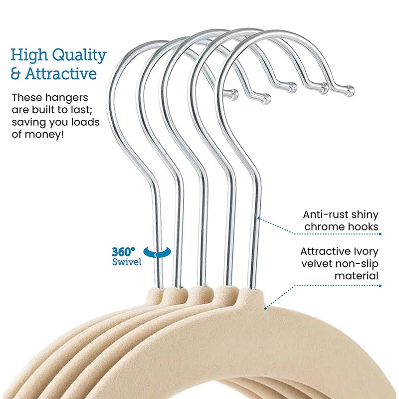 50 привлекательных бархатных нескользящих вешалок цвета слоновой кости с поворотом на 360 градусов, блестящими крючками и вырезами на плечах, которые сделают подвесную одежду простым удовольствием!