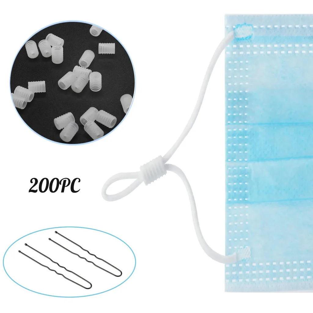 Product selling point: Multi Functional cord stops for drawstrings, round elastic bands, sewing String stopper is made of high quality silicone, it is sturdy and not easy to break, you can use them for a long time Adjustable cord stopper is easy to adjust the length of the mask cord to suit for kids Cord lock material: Silicone Package: 200(±3)× Silicone fixed buckle 2 × Tool