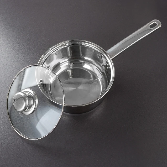 Ковш «Гретте», 1,25 л, d=16 см, стеклянная крышка, индукция