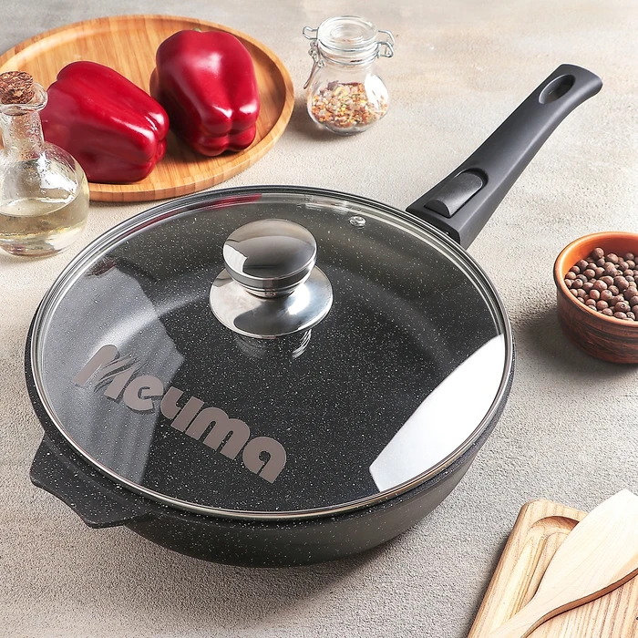 Отзывы о Сковорода Гранит Black 26 см антипригарное покрытие съёмная ручка стеклянная крышка