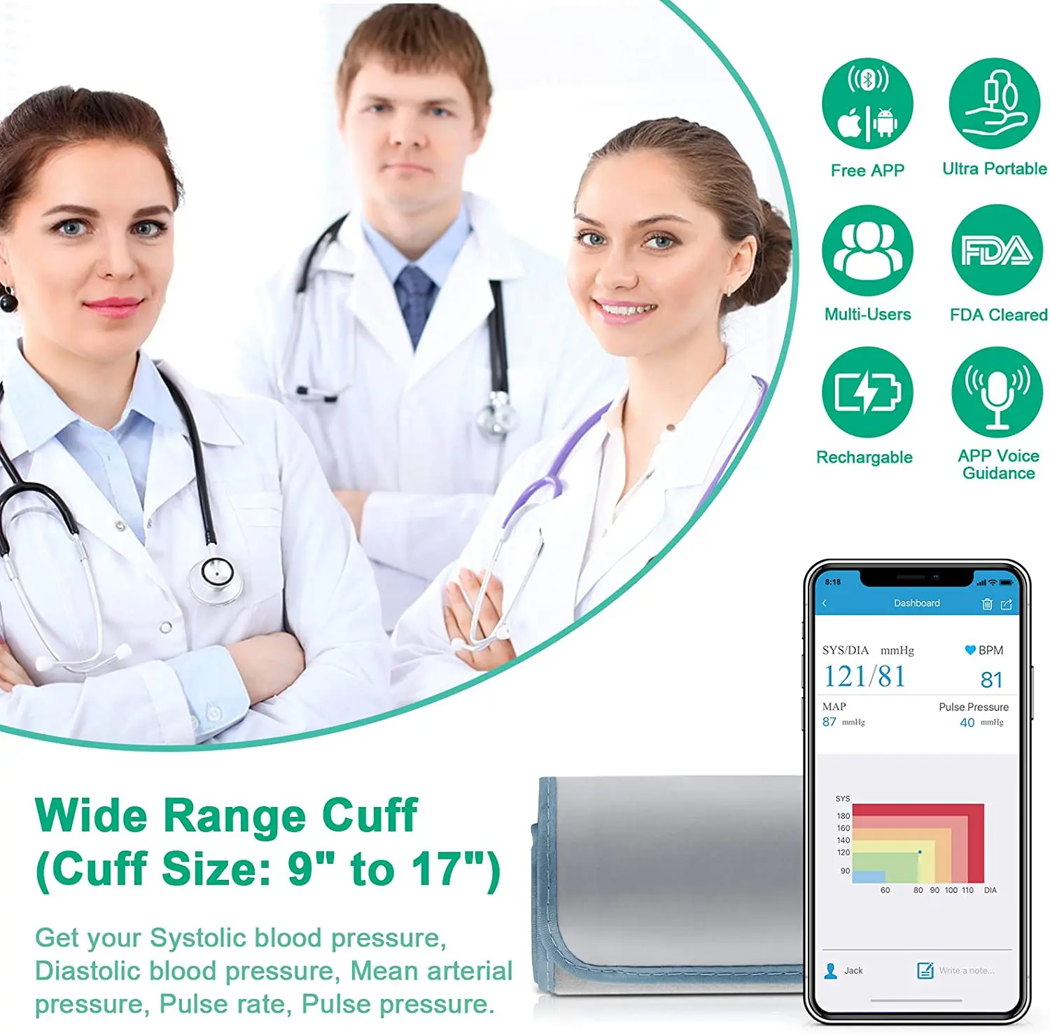 3>Медицинская точность и надежность: AirBP STD Одобрен CE, что соответствует стандарту ЕС.Помимо систолического и диастолического артериального давления и частоты сердечных сокращений, AirBP также отслеживает среднее предсердийное давление (MAP) и пульсовое давление, вы можете получить больше информации о вашем уровне артериального давления.