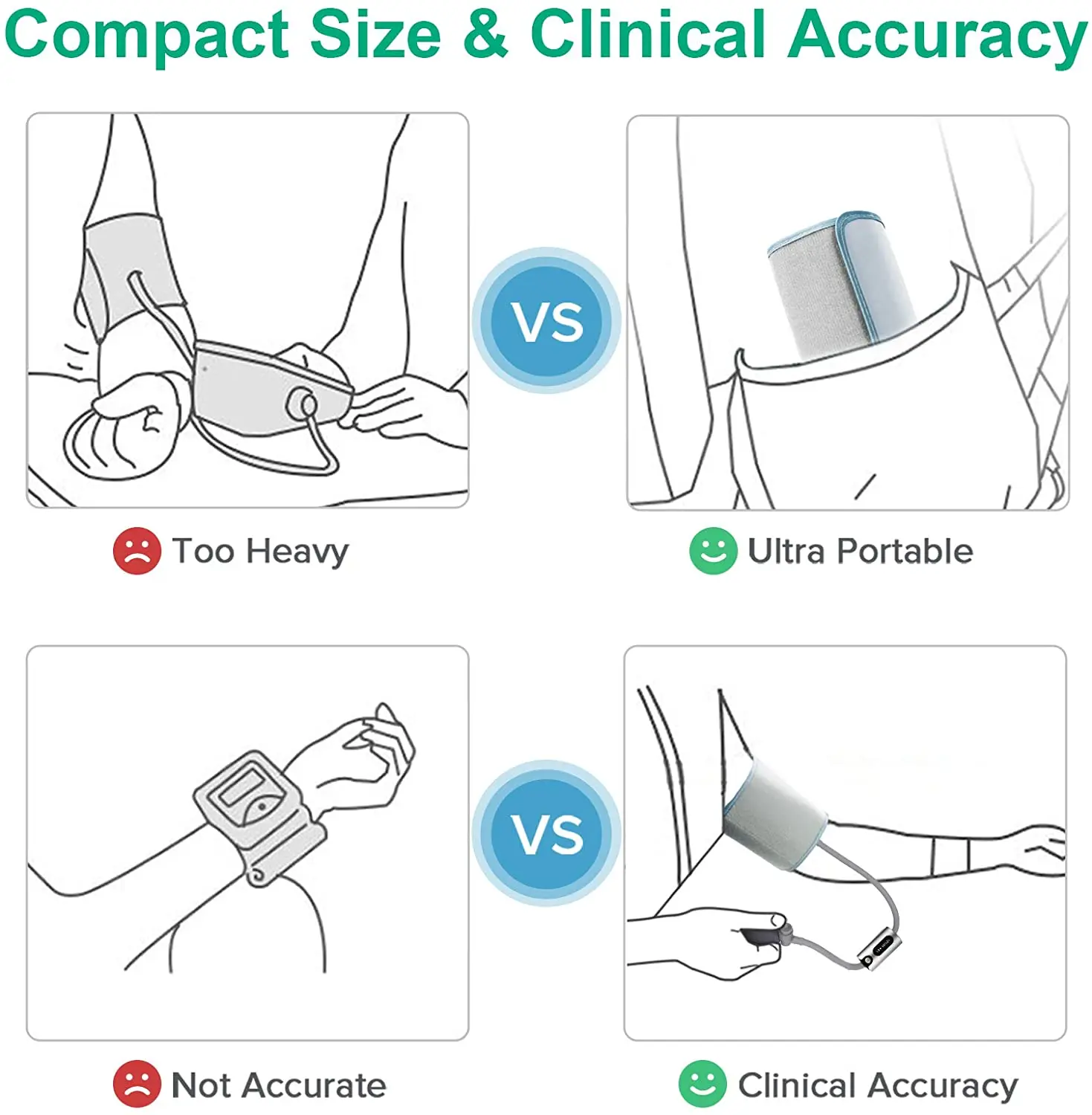 1>Самый маленький и легкийИзмеритель давления/тонометр: AirBP STD всего 5,6 унции (160 г) в целом, что легче, чем iPhone X, благодаря его ультра портативный размер вы можете взять его с собой куда угодно и измерить кровяное давление в любое время.