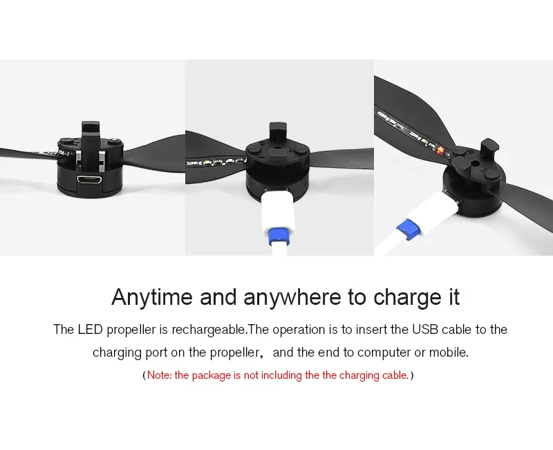 Светодиодный пропеллер перезаряжается. Операция заключается в том, чтобы вставить usb-кабель в порт зарядки на пропеллере, а конец-на компьютер или мобильный телефон.