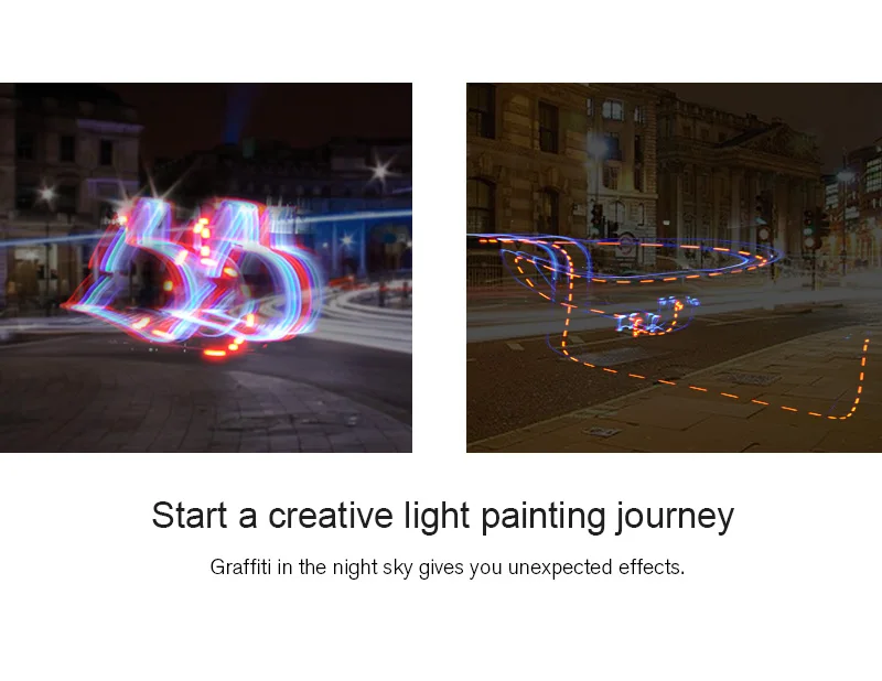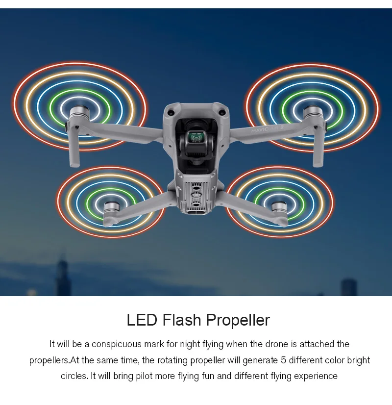 Он будет заметным знаком для ночного полета, когда Дрон прикрепится к пропеллерам. В то же время вращающийся пропеллер будет генерировать 5 различных цветных ярких кругов. Это принесет пилоту больше веселья и разного опыта полета