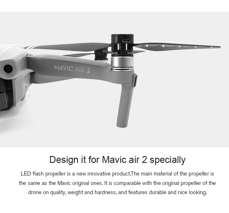 Светодиодный пропеллер-это новый инновационный продукт. Основной материал пропеллера такой же, как и оригинальные Mavic. Он сопоставим с оригинальным пропеллером дрона по качеству, весу и твердости, и имеет прочный и красивый вид.