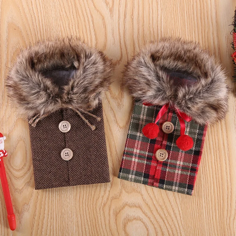 6 шт. Рождественская Крышка для бутылки вина, украшение для винной бутылки, дизайн воротника с пуговицами, вечерние рождественские украшения