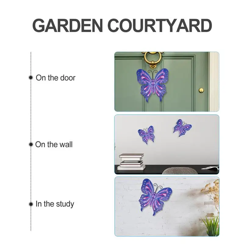 Это уникальное украшение для стен с бабочками. Легко украсить. Изготовлен из высококачественного материала, прочного железа и используется для длительного украшения. Подходит для различных сцен, таких как сад, балкон, гостиная, офис, спальня и т. д.