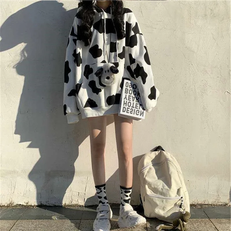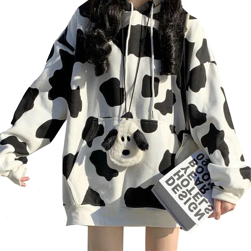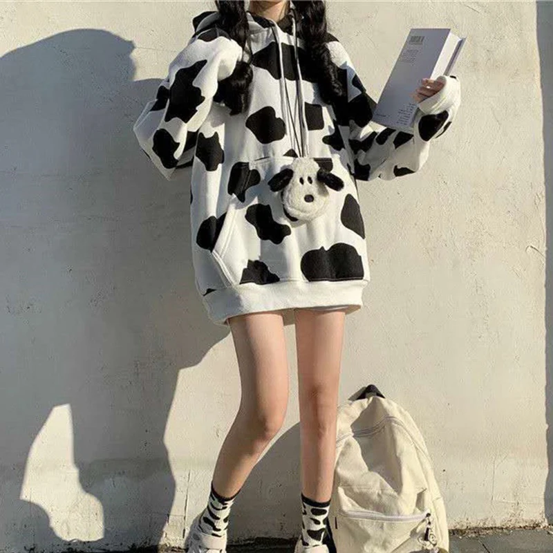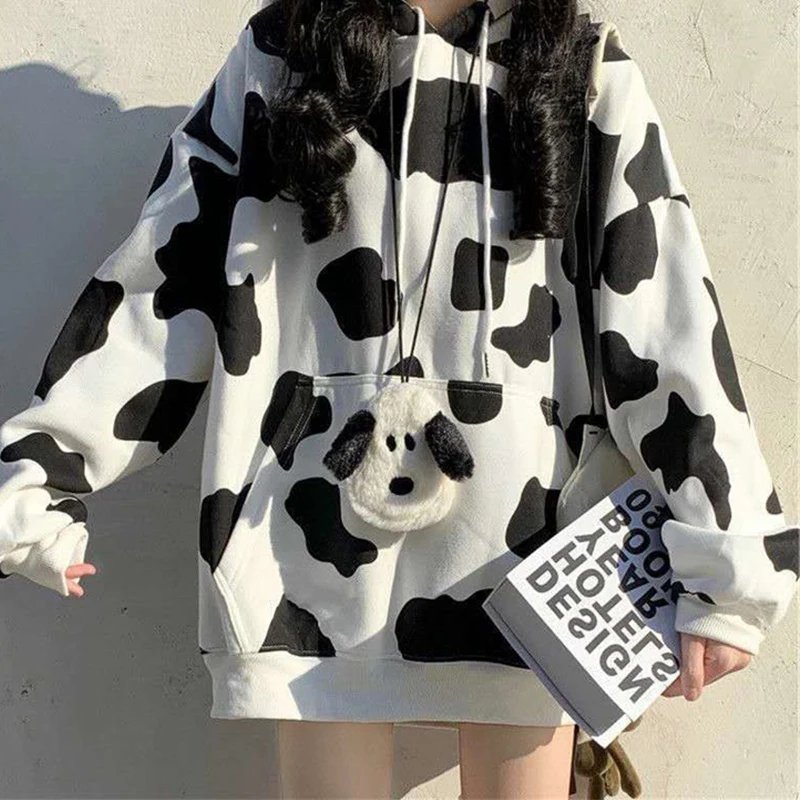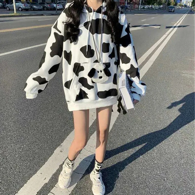 Женские толстовки с принтом коровы, пуловер в стиле Харадзюку, топы, осенняя Женская толстовка с длинным рукавом, модная уличная одежда, женские толстовки, топы