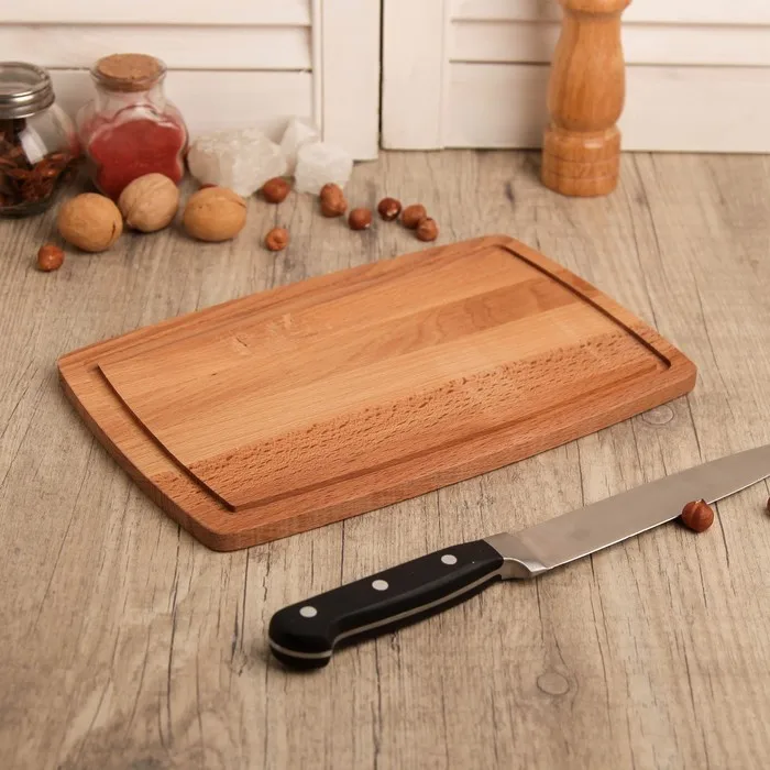 Отзывы о Доска разделочная малая с кровостоком 300х200 мм бук 12мм массив 1814452 | Дом и сад