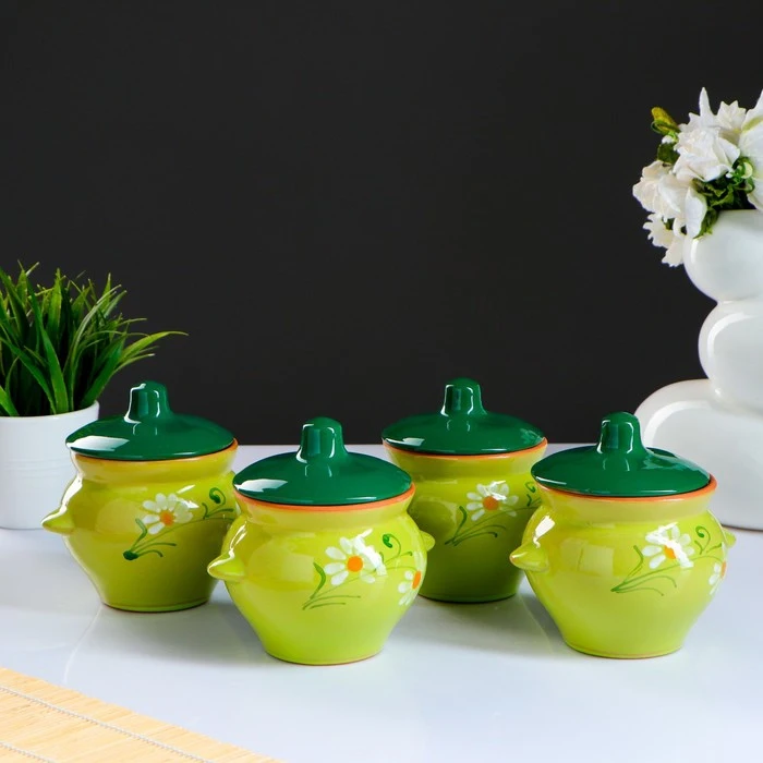 Набор горшков для жаркого №5 с ручками 4х0,5л зеленый