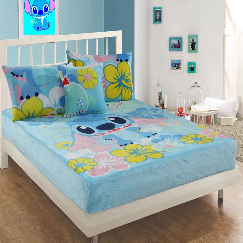 Отзывы о Натяжная фланелевая простыня Disney Stitch с резинкой постельное белье покрывало на