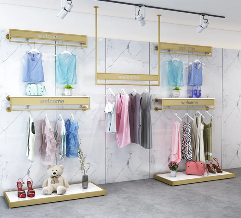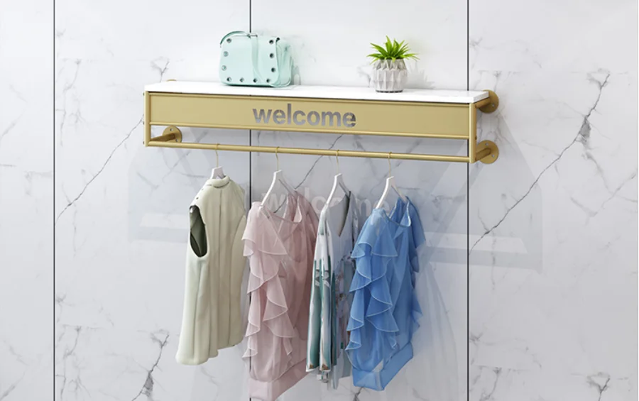 Отзывы о Золотая полка для магазина одежды висячая на стену и сбоку подвесная комбинация