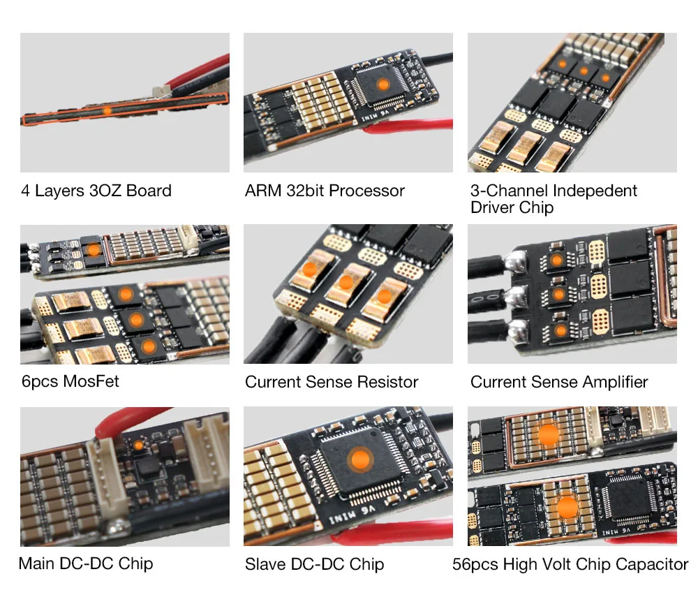 -Самый маленький контроллер VESC на рынке, с размером всего 18x65 мм, используется для миниатюрного оборудования, такого как смарт-автомобили, микро роботы, электрические роликовые коньки, дроны, электрические модели, И т. д.