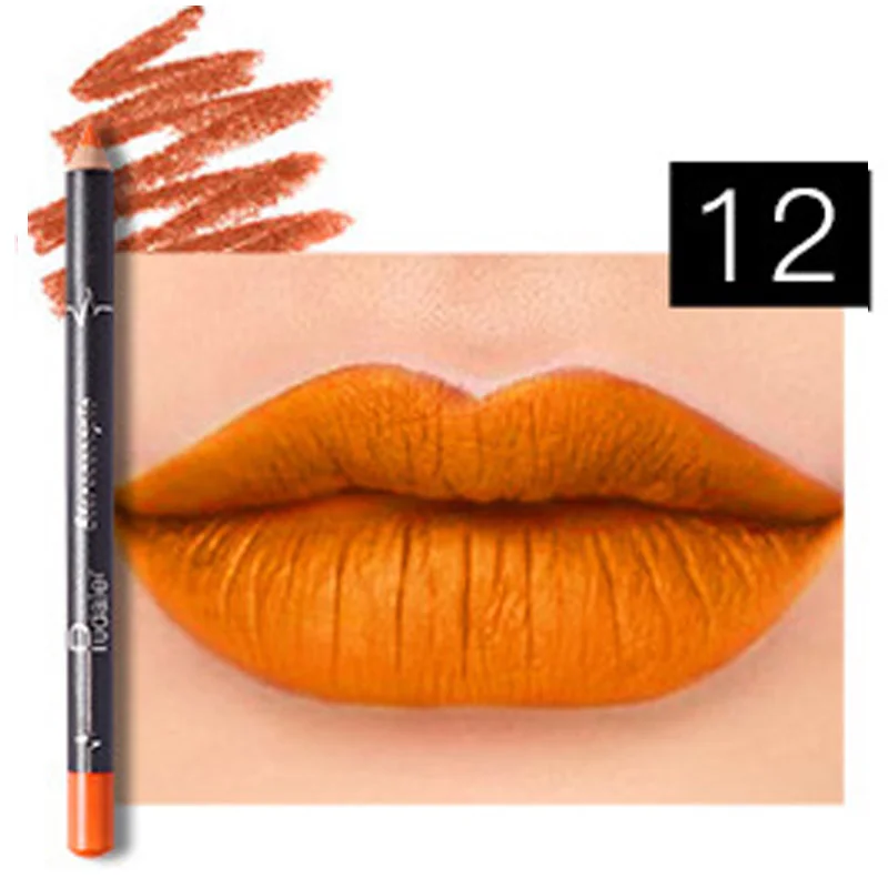 12 шт./компл., Профессиональный матовый карандаш для губ, водостойкий, долговечный, гладкий, натуральный карандаш для губ Косметика, набор косметических инструментов