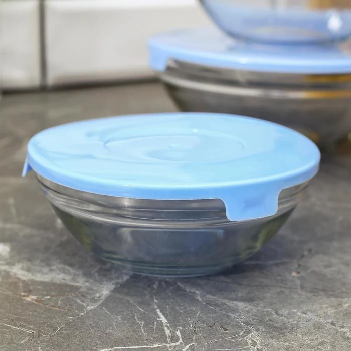 Прочная пластиковая крышка надёжно прилегает к стеклянному основанию контейнера, обеспечивая полную герметичность при хранении продуктов, что защищает содержимое от проникновения посторонних запахов.