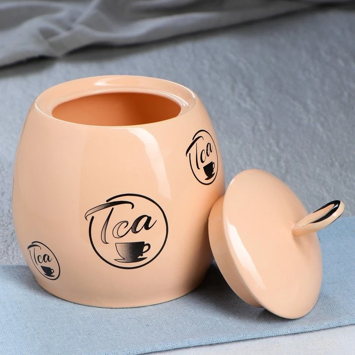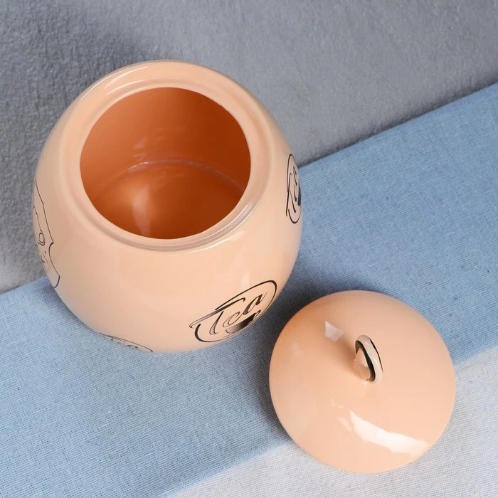 Сахарница "Петелька" 0,8 л, персиковая, глазурь, с рисунком 4908793