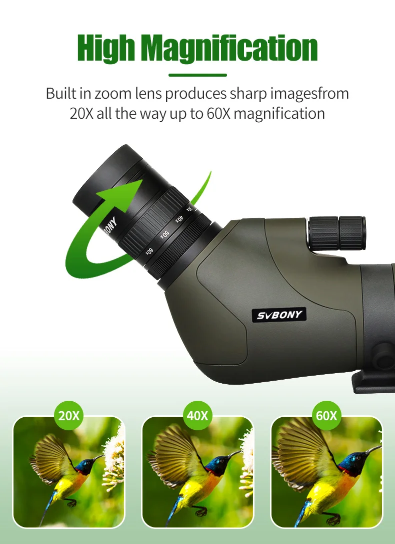 Отзывы о SVBONY 20 60x80 Zoom Зрительная труба для птичьих часов телескоп с азотным наполнением