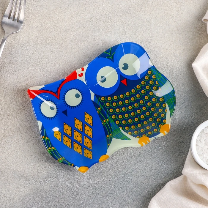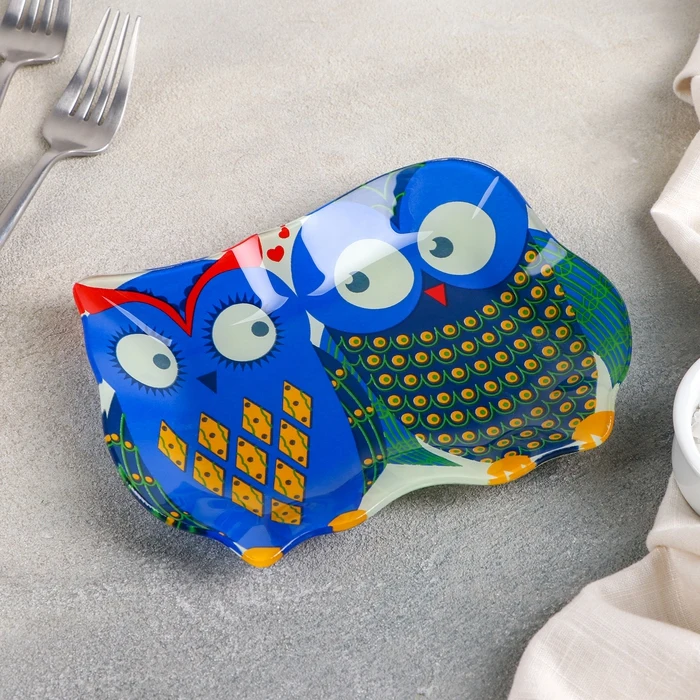 Отзывы о Блюдо сервировочное Задумчивые совы 18×13 1 см цвет синий | Дом и сад