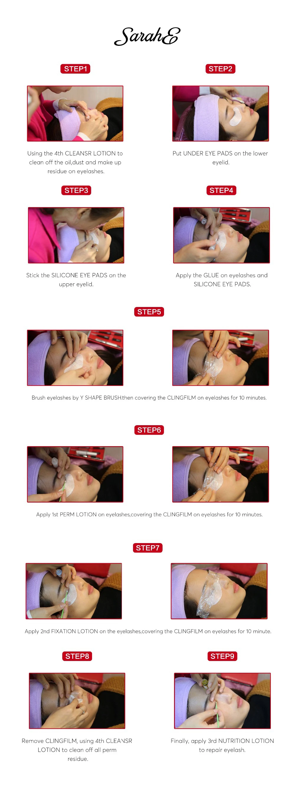 6) Снимите Пермь лосьон #1 с Y кисть, затем нанесите закрепитель #2 на ресницы, а затем закройте глаза с полиэтиленовой пленкой. (Время зарядки: 10-12 минут)