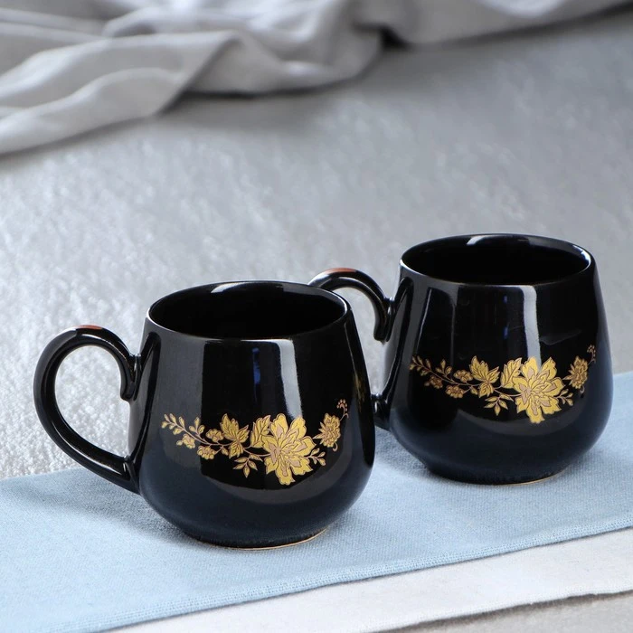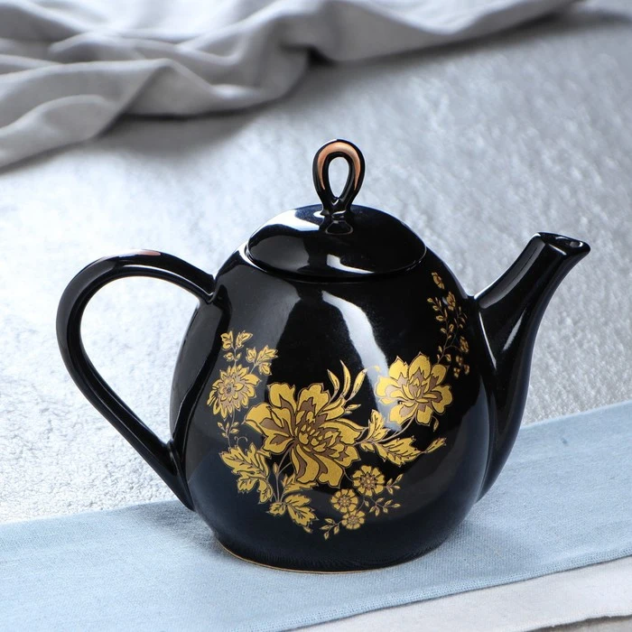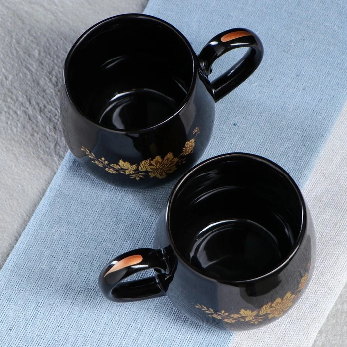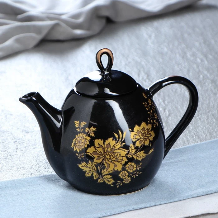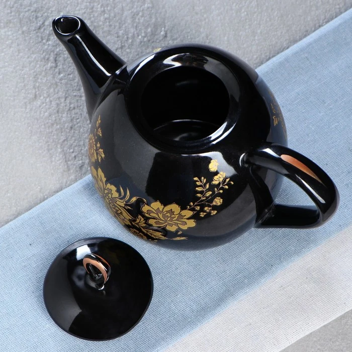 Чайный сервиз "Петелька" чёрный, золотая ветка, чайник 0,8 л, чашка 0,22 л 4869032