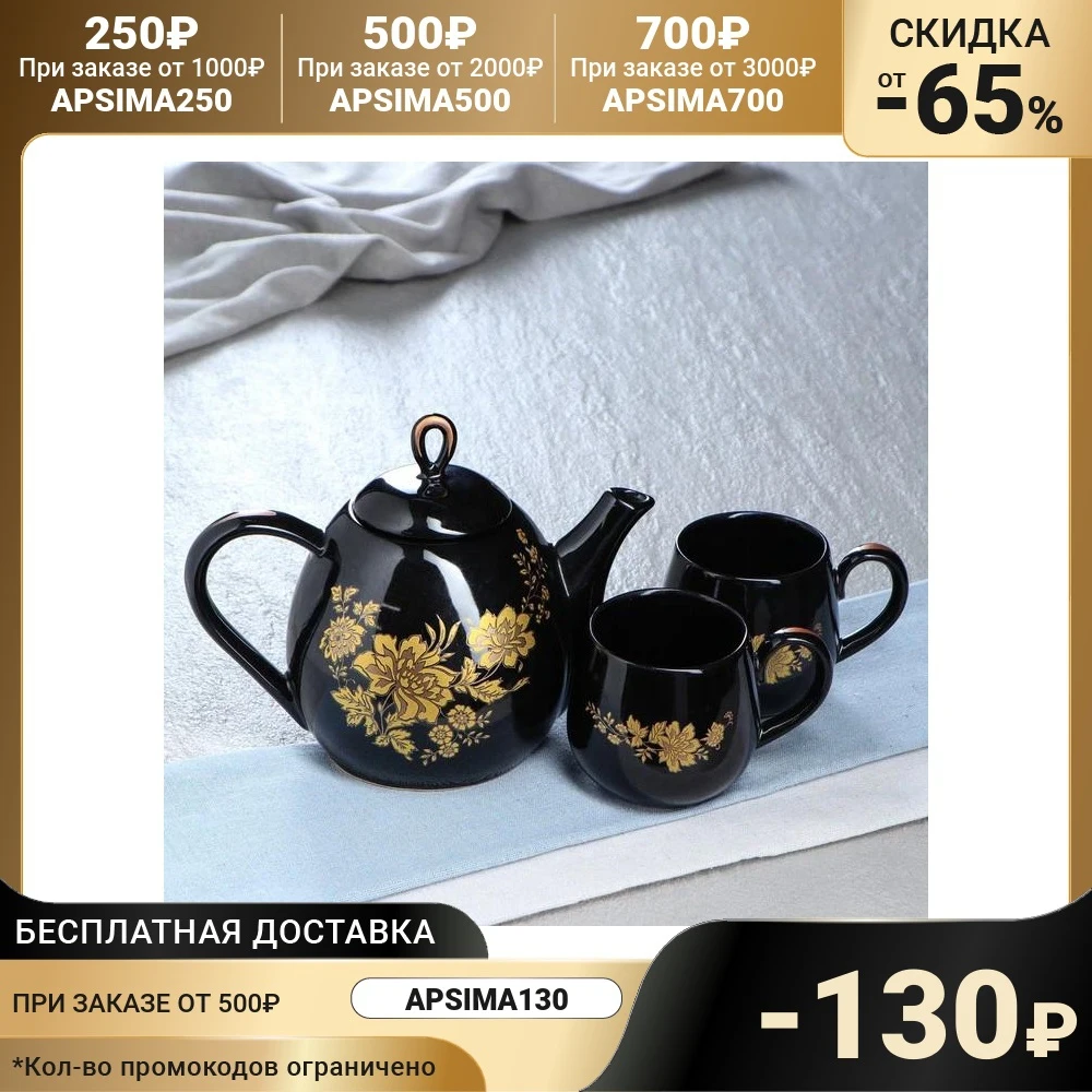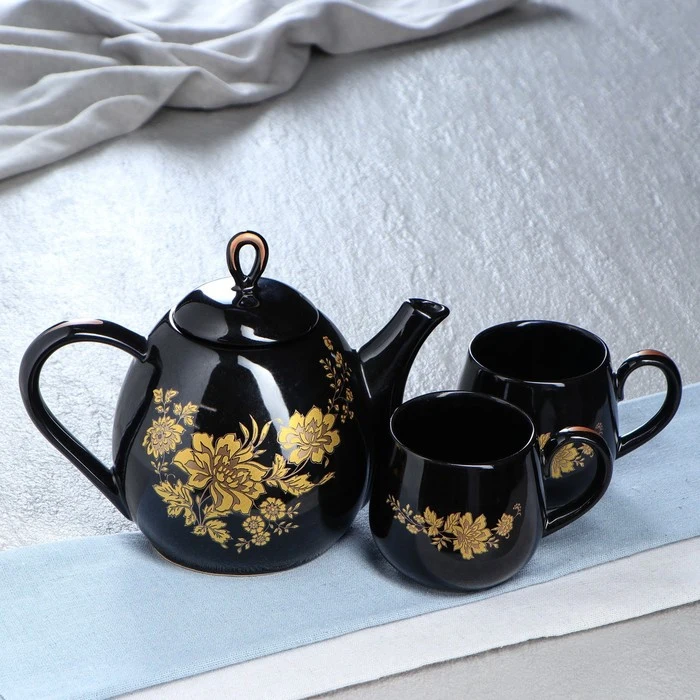 Отзывы о Чайный сервиз "Петелька" чёрный золотая ветка чайник 0 8 л чашка 22 4869032 | Дом и
