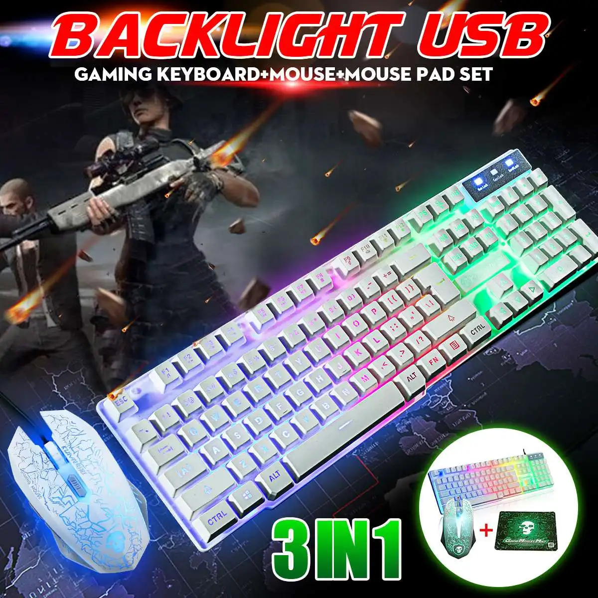 Отзывы о Игровая клавиатура и мышь комплект с ковриком для мыши радужная расцветка