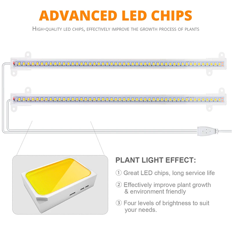 25%, 50%, 75%, 100% прочности. Две полосы 10 Вт и 48 Светодиодный светильник достаточно излучают, чтобы покрыть все этапы роста растений, не беспокоясь о выгорании растений