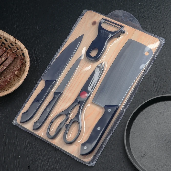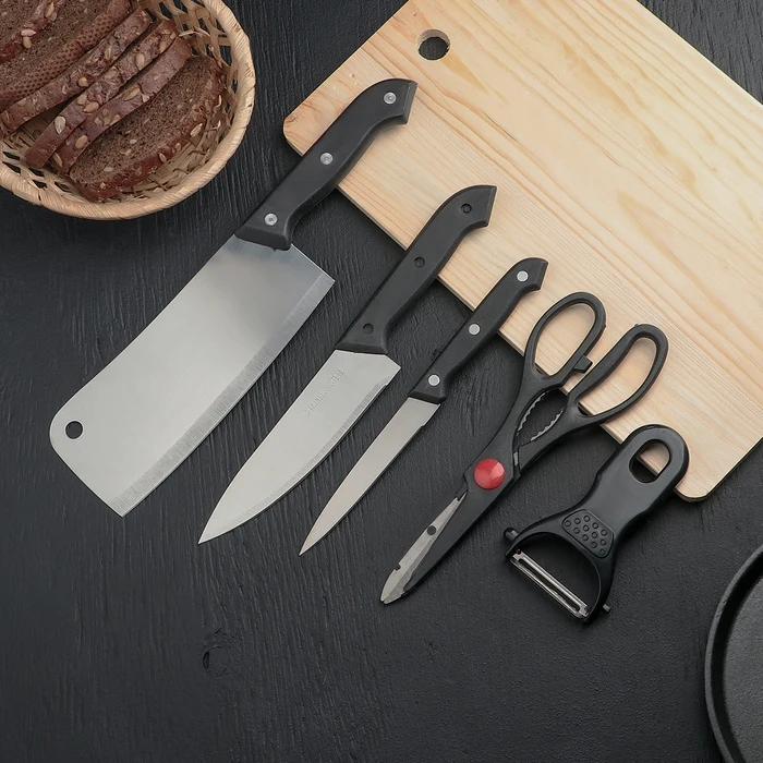 Набор кухонный, 5 предметов: 3 ножа 8/16,5/17 см, ножницы, овощечистка